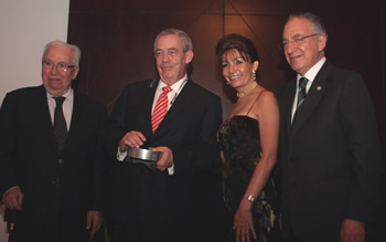 CEMEX in Colombia President Cesar Constain was on hand to receive the recognition from Florencio Salazar Adame, Mexican Ambassador for Colombia, before a group of attendees that included important representatives of the national government, private industry, the diplomatic corps, and pro-cooperation agencies from both countries. Former Colombian President Belisario Betancur was among the night's distinguished guests.